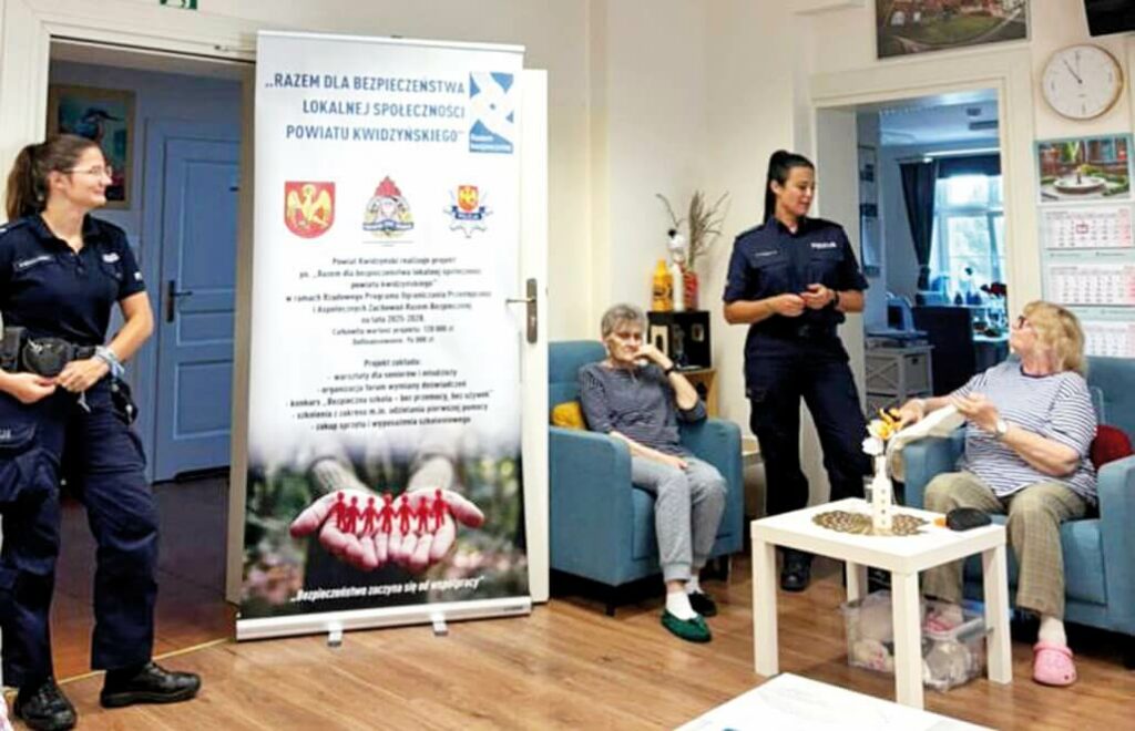 „Razem dla bezpieczeństwa lokalnej społeczności powiatu kwidzyńskiego” to tegoroczny projekt realizowany przez samorząd powiatu w ramach Rządowego Programu Ograniczania Przestępczości i Aspołecznych Zachowań „Razem bezpieczniej” na lata 2025-2028. To obecnie największy tego typu program profilaktyczny, realizowany przez Ministerstwo Spraw Wewnętrznych i Administracji we współpracy z samorządami i organizacjami pozarządowymi. Jego cele to poprawa bezpieczeństwa w miejscach publicznych i poczucia bezpieczeństwa mieszkańców poprzez ograniczanie przestępczości i zachowań aspołecznych. Samorząd powiatu na realizację projektu „Razem dla bezpieczeństwa lokalnej społeczności powiatu kwidzyńskiego” uzyskał dofinansowanie w kwocie 96 tys. zł. Koszt jego realizacji to 120 tys. zł. W ramach projektu zaplanowano między innymi przeprowadzenie szkoleń i warsztatów dotyczących sposobów rozpoznawania, reagowania i wspierania osób w kryzysie suicydalnym oraz skutecznych metod pomocy, udzielania pierwszej pomocy, sposobów zachowania się w sytuacjach kryzysowych, a także samoobrony oraz przeciwdziałaniu zachowaniom agresywnym. Opracowane zostaną procedury postępowania i prowadzenia rozmowy z osobą w kryzysie suicydalnym oraz udzielania systemowego wsparcia społecznego. Zaplanowano też spotkania dla seniorów i młodzieży ze szkół oraz rodziców i opiekunów. Ich celem ma być podniesienie wiedzy na temat uzależnień od środków psychoaktywnych i internetu, w tym tematyki samobójstw oraz depresji występującej u młodych ludzi i seniorów oraz bezpiecznego poruszania się w świecie cyfrowym. Zorganizowane zostaną również: konkurs dotyczący przeciwdziałania agresji rówieśniczej, wycieczki edukacyjne i gminne pikniki edukacyjne. W ramach projektu ma zostać zorganizowane mobilne miasteczko ruchu drogowego. Realizacja projektu ma między innymi przyczynić się do kształtowania pozytywnych postaw mieszkańców oraz do wzrostu wiedzy o zagrożeniach w zakresie bezpieczeństwa oraz sposobach ich zapobiegania. Projekt będzie realizowany do końca bieżącego roku. Odbyły się już pierwsze spotkania. Przykładem spotkanie policjantek z Komendy Powiatowej Policji w Kwidzynie z seniorami w Dziennym Domu Pobytu w Kwidzynie. Podczas spotkania funkcjonariuszki poruszyły z seniorami tematy związane z bezpieczeństwem na drodze, w internecie oraz w codziennym życiu. Policjantki odwiedziły także uczniów klas pierwszych Szkoły Podstawowej w Sadlinkach. Funkcjonariuszki opowiedziały dzieciom jak unikać zagrożeń na drodze, we własnym domu oraz w kontaktach z obcymi osobami. Ponieważ zbliżają się jesień i zima funkcjonariuszki z KPP w Kwidzynie przypomniały dzieciom o tym, jak ważne jest noszenie odblaskowych elementów.