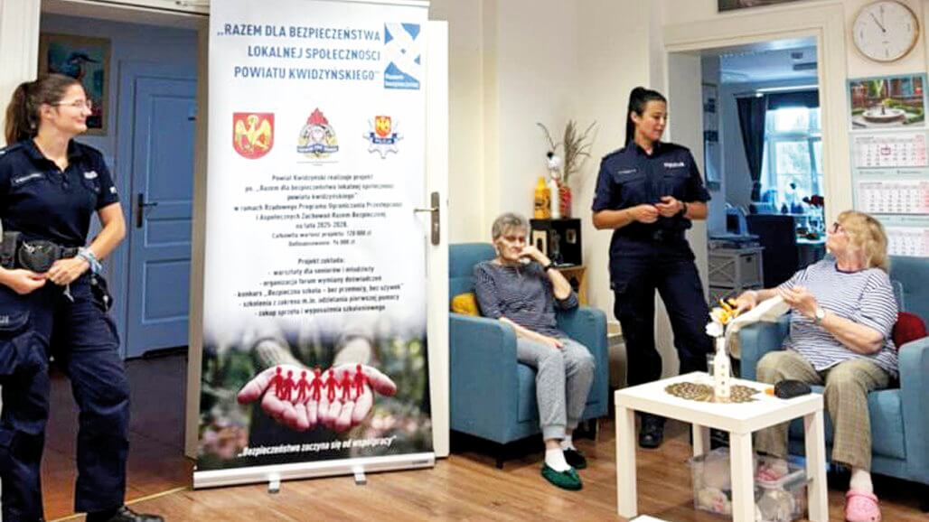 „Razem dla bezpieczeństwa lokalnej społeczności powiatu kwidzyńskiego” to tegoroczny projekt realizowany przez samorząd powiatu w ramach Rządowego Programu Ograniczania Przestępczości i Aspołecznych Zachowań „Razem bezpieczniej” na lata 2025-2028. To obecnie największy tego typu program profilaktyczny, realizowany przez Ministerstwo Spraw Wewnętrznych i Administracji we współpracy z samorządami i organizacjami pozarządowymi. Jego cele to poprawa bezpieczeństwa w miejscach publicznych i poczucia bezpieczeństwa mieszkańców poprzez ograniczanie przestępczości i zachowań aspołecznych. Samorząd powiatu na realizację projektu „Razem dla bezpieczeństwa lokalnej społeczności powiatu kwidzyńskiego” uzyskał dofinansowanie w kwocie 96 tys. zł. Koszt jego realizacji to 120 tys. zł. W ramach projektu zaplanowano między innymi przeprowadzenie szkoleń i warsztatów dotyczących sposobów rozpoznawania, reagowania i wspierania osób w kryzysie suicydalnym oraz skutecznych metod pomocy, udzielania pierwszej pomocy, sposobów zachowania się w sytuacjach kryzysowych, a także samoobrony oraz przeciwdziałaniu zachowaniom agresywnym. Opracowane zostaną procedury postępowania i prowadzenia rozmowy z osobą w kryzysie suicydalnym oraz udzielania systemowego wsparcia społecznego. Zaplanowano też spotkania dla seniorów i młodzieży ze szkół oraz rodziców i opiekunów. Ich celem ma być podniesienie wiedzy na temat uzależnień od środków psychoaktywnych i internetu, w tym tematyki samobójstw oraz depresji występującej u młodych ludzi i seniorów oraz bezpiecznego poruszania się w świecie cyfrowym. Zorganizowane zostaną również: konkurs dotyczący przeciwdziałania agresji rówieśniczej, wycieczki edukacyjne i gminne pikniki edukacyjne. W ramach projektu ma zostać zorganizowane mobilne miasteczko ruchu drogowego. Realizacja projektu ma między innymi przyczynić się do kształtowania pozytywnych postaw mieszkańców oraz do wzrostu wiedzy o zagrożeniach w zakresie bezpieczeństwa oraz sposobach ich zapobiegania. Projekt będzie realizowany do końca bieżącego roku. Odbyły się już pierwsze spotkania. Przykładem spotkanie policjantek z Komendy Powiatowej Policji w Kwidzynie z seniorami w Dziennym Domu Pobytu w Kwidzynie. Podczas spotkania funkcjonariuszki poruszyły z seniorami tematy związane z bezpieczeństwem na drodze, w internecie oraz w codziennym życiu. Policjantki odwiedziły także uczniów klas pierwszych Szkoły Podstawowej w Sadlinkach. Funkcjonariuszki opowiedziały dzieciom jak unikać zagrożeń na drodze, we własnym domu oraz w kontaktach z obcymi osobami. Ponieważ zbliżają się jesień i zima funkcjonariuszki z KPP w Kwidzynie przypomniały dzieciom o tym, jak ważne jest noszenie odblaskowych elementów.