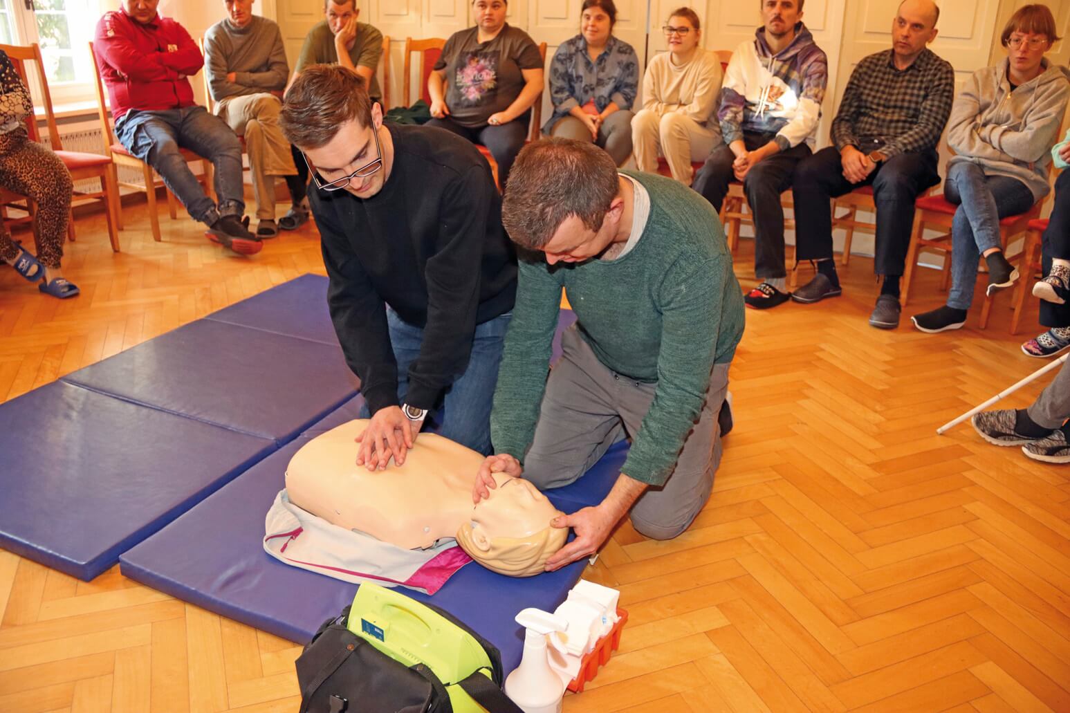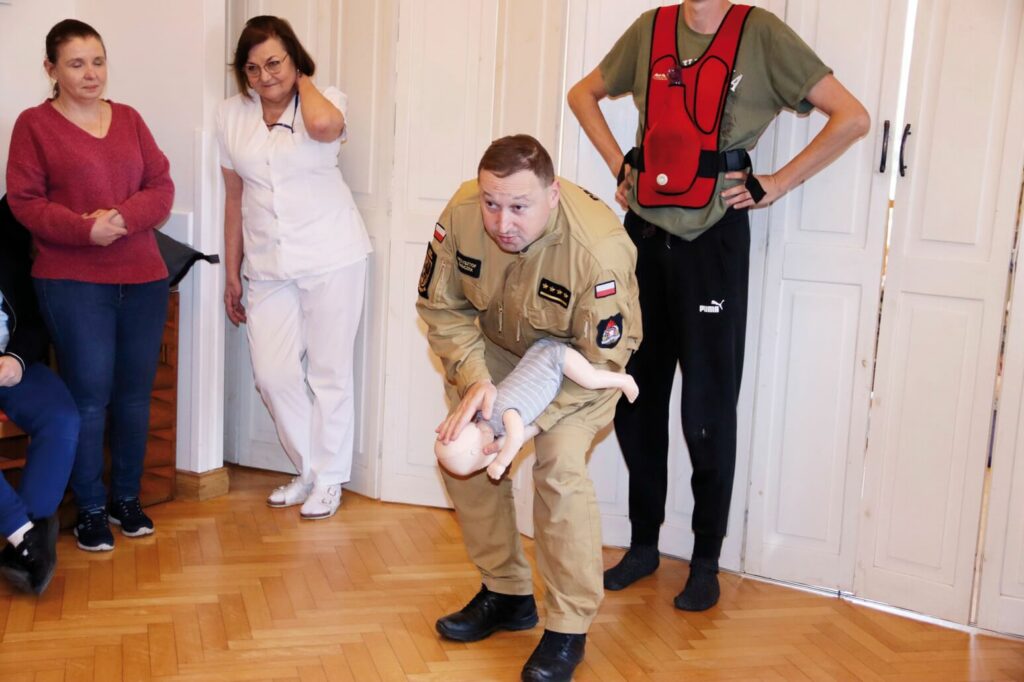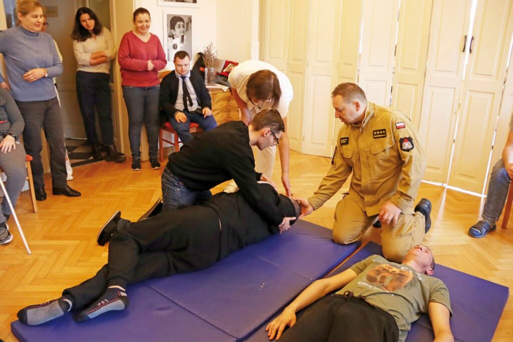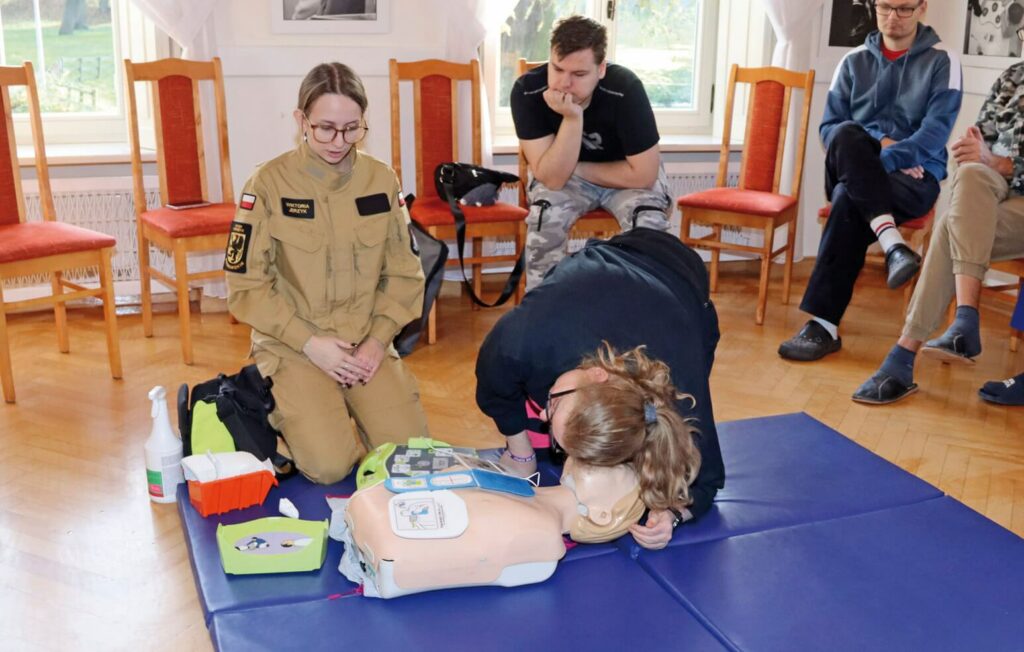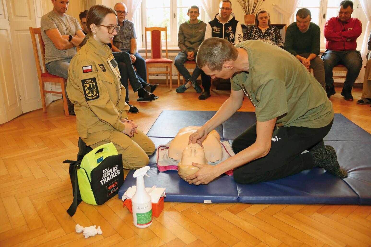 Uczestnicy i pracownicy Warsztatu Terapii Zajęciowej w Górkach, prowadzonego przez Fundację „Misericordia”, wzięli udział w szkoleniu dotyczącym udzielania pierwszej pomocy. To kolejne tego typu szkolenie, zarówno dla pracowników, jak i uczestników warsztatu. Poprowadzili je st. kpt. Krzysztof Skoczek oraz str. Wiktoria Jerzyk z Komendy Powiatowej Państwowej Straży Pożarnej w Kwidzynie. Uczestnicy i pracownicy Warsztatu Terapii Zajęciowej w Górkach, prowadzonego przez Fundację „Misericordia”, wzięli udział w szkoleniu dotyczącym udzielania pierwszej pomocy. To kolejne tego typu szkolenie, zarówno dla pracowników, jak i uczestników warsztatu. Poprowadzili je st. kpt. Krzysztof Skoczek oraz str. Wiktoria Jerzyk z Komendy Powiatowej Państwowej Straży Pożarnej w Kwidzynie.