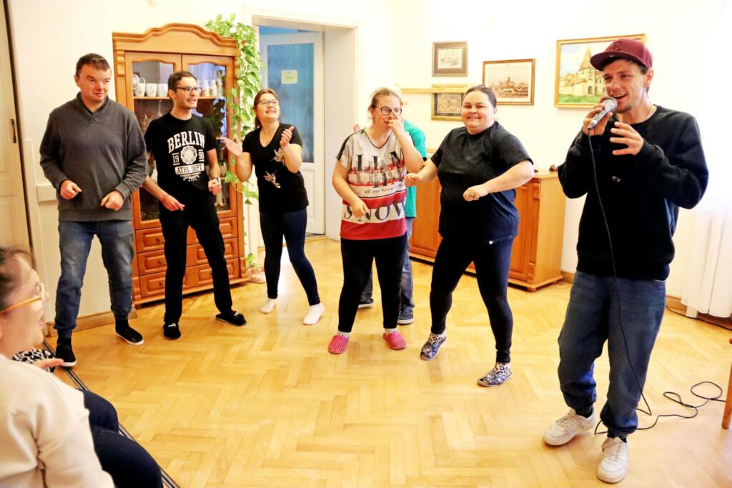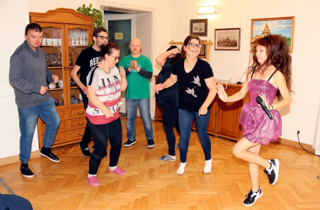 Zespół Tu i Teraz wystąpił przed uczestnikami Warsztatu Terapii Zajęciowej w Górkach. Tworzą go Weronika „Meiga” Piotrowska oraz Łukasz „Wiraż” Talik. To już drugi występ przed warsztatową publicznością. Duet wystąpił w WTZ w Górkach w 2023 roku, tuż po nagraniu swojego pierwszego albumu. Weronika Piotrowska to aktorka i piosenkarka, która występuje w spektaklach, zarówno dla dorosłych, jak i dzieci. Prowadzi warsztaty wokalne oraz uczy improwizacji scenicznej. Łukasz Talik śpiewa rap. Podczas koncertu w warsztacie duet zaprezentował covery oraz swoje autorskie utwory. Zespół do aktywnego udziału w występie zaprosił uczestników warsztatu, którzy tańczyli i śpiewali razem z artystami. Na zakończenie koncertu nie mogło zabraknąć zdjęcia wykonawców z uczestnikami warsztatu.