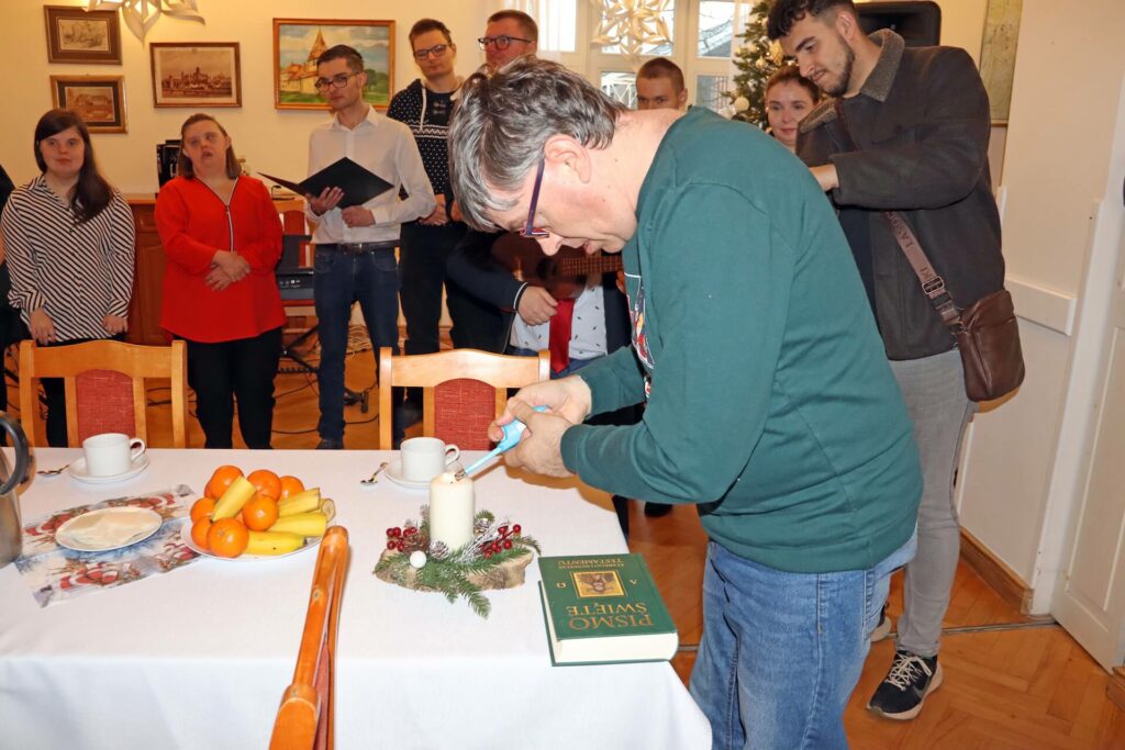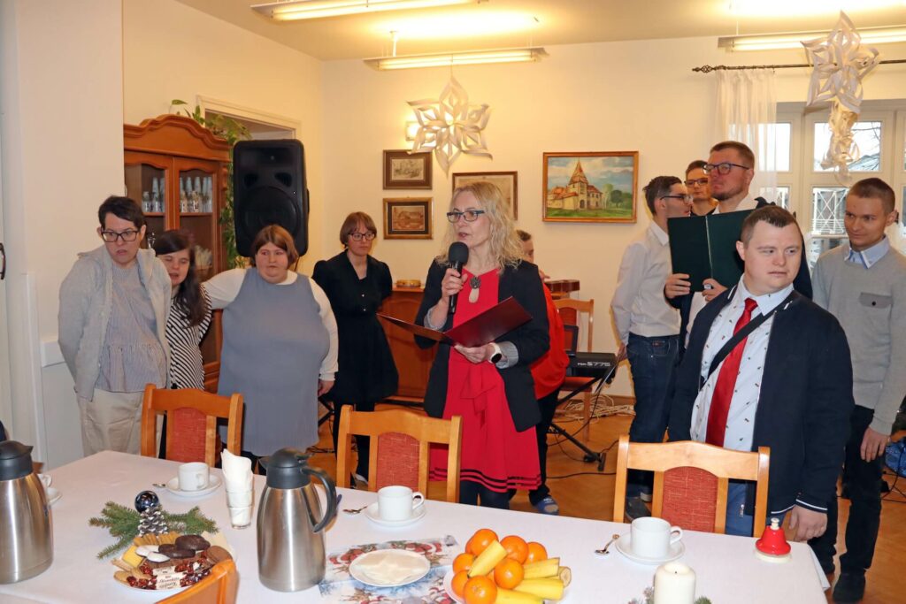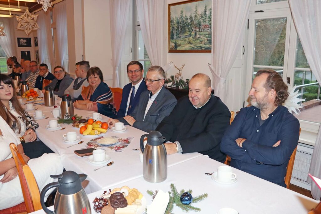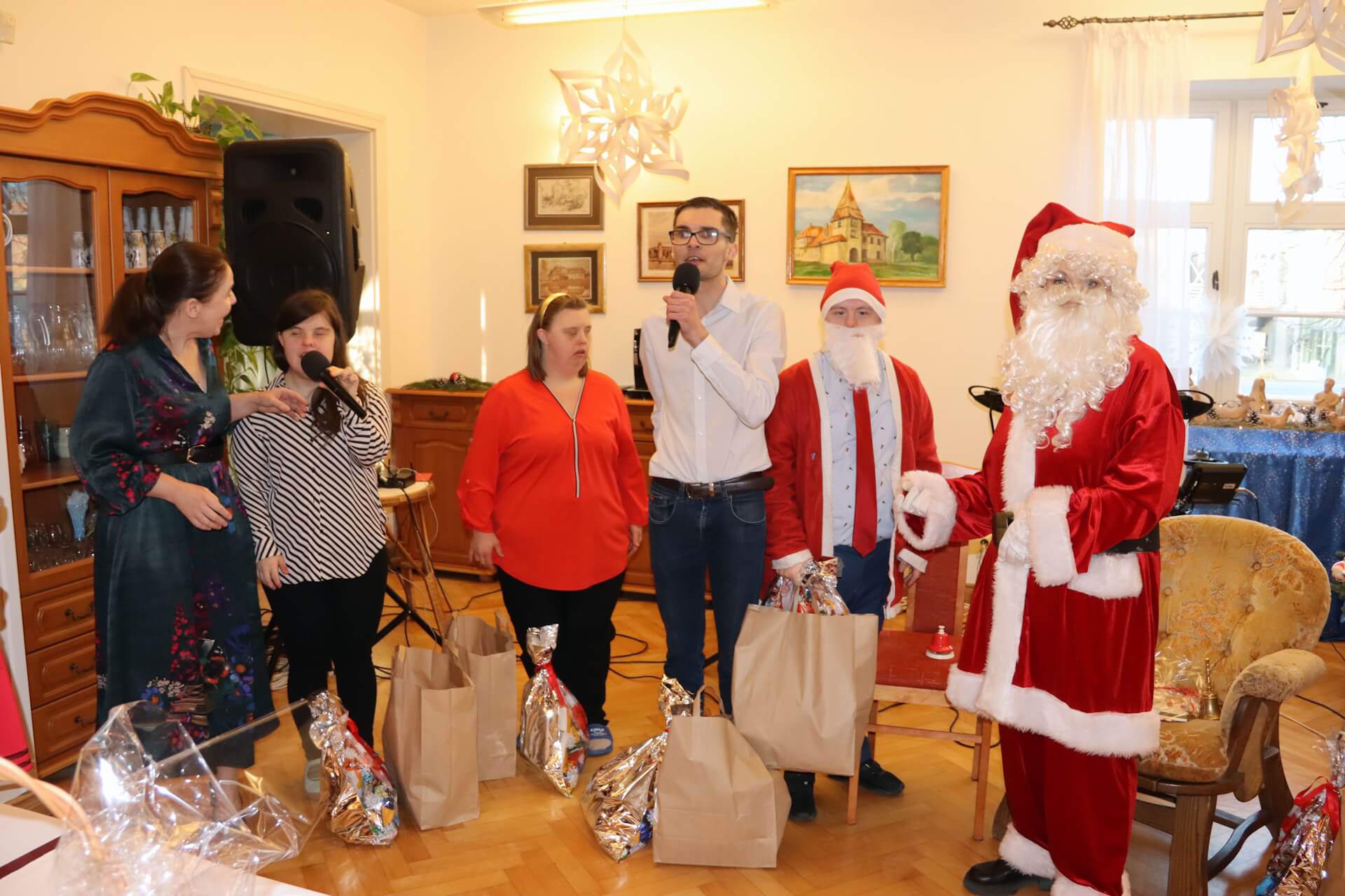 Spotkanie opłatkowe odbyło się w siedzibie Warsztatu Terapii Zajęciowej w Górkach, prowadzonego przez Fundację „Misericordia”. Wzięli w nim udział uczestnicy i pracownicy placówki oraz goście, w tym przedstawiciele władz samorządowych powiatu, gminy Kwidzyn i miasta Kwidzyna. Uczestników warsztatu odwiedził Mikołaj, który wszystkim wręczył paczki. W tym roku, dzięki hojności darczyńcy, każdy uczestnik otrzymał dwie paczki. W spotkaniu świątecznym uczestniczyli między innymi Katarzyna Ochlik-Rafka z zarządu powiatu kwidzyńskiego, Sebastian Kasztelan, burmistrz Kwidzyna, Krzysztof Michalski, zastępca wójta gminy Kwidzyn, Renata Majda, kierownik Powiatowego Centrum Pomocy Rodzinie w Kwidzynie, Kazimierz Gorlewicz, prezes Fundacji „Misericordia” i Bogdan Muchowski, wiceprzewodniczący Rady Fundacji „Misericordia” oraz Zbigniew Talarczyk z PCPR w Kwidzynie. Nie mogło zabraknąć ks. Janusza Kiliana, proboszcza parafii Miłosierdzia Bożego i zarazem przedstawiciela fundatora, którym jest parafia. Obecna była Jolanta Czajkowska, wolontariuszka, która od wielu lat wspiera uczestników warsztatu i Wanda Masalska-Szymanek z Rady Fundacji „Misericordia”. Na spotkanie przybyła też Agnieszka Żymalska z firmy Energo-Remont, sąsiadującej z WTZ. Dzięki Barbarze Żymalskiej, dyrektor firmy, wszyscy uczestnicy warsztatu otrzymali dodatkowe paczki świąteczne. Gości powitała Anna Kowalska, kierownik Warsztatu Terapii Zajęciowej w Górkach. W klimat Świąt Bożego Narodzenia tradycyjnie wprowadził wszystkich ks. Janusz Kilian. Uczestnicy spotkania wysłuchali kolęd w wykonaniu zespołu, który tworzą między innymi uczestnicy pracowni artystycznej, kierowanej przez Joannę Postawę-Wolnik. Podczas wydarzenia podzielono się opłatkiem. O uczestnikach warsztatu nie zapomniał Mikołaj, który przyniósł paczki świąteczne. W tym roku, dzięki Barbarze Żymalskiej, każdy uczestnik warsztatu otrzymał dodatkową paczkę.
